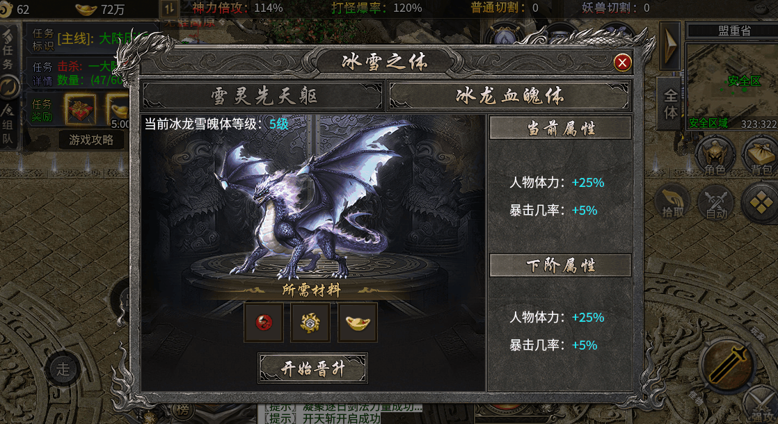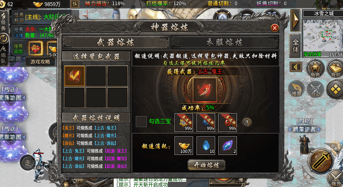 第五步:基础发育后,开始提升大小神魔,进入冰雪之城,一个怪